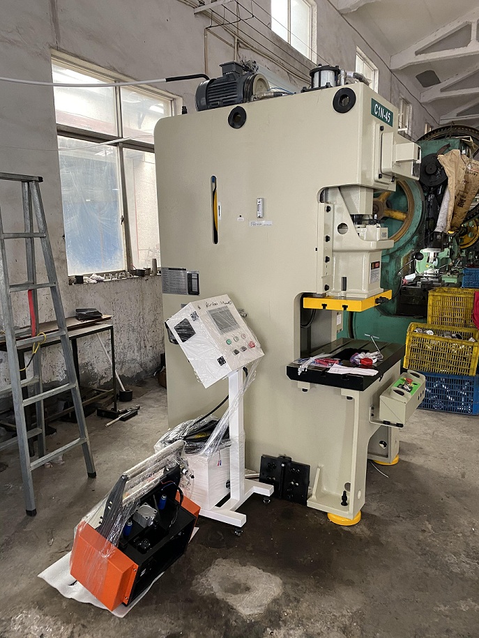 客戶安裝2臺(tái)300型伺服送料機(jī)配合寧波固安力沖床